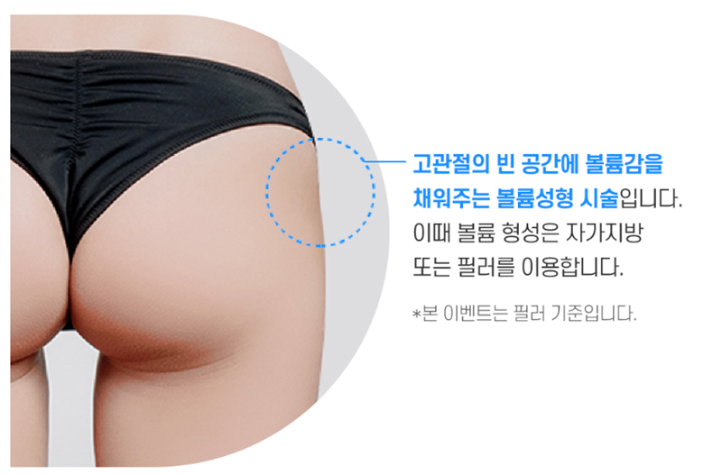 : 힙 전체 볼륨 보완이 필요, 힙딥만 채우면 오히려 부자연스러울 수 있음 → 단순 힙딥 보완이 아닌 라인 디자인이 중요합니다.